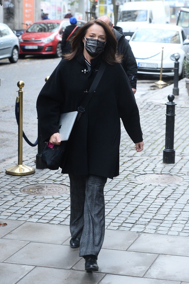 Agnieszka Woźniak Starak Stylizacje - Trendy wiosna 2020. Buty Agnieszki Woźniak-Starak kosztują ... / Dziennikarka prawdopodobnie chciała dać do zrozumienia, że woli nie oglądać tego co się dzieje na stadionie.